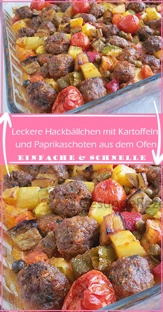 Für die Hackbällchen Hackfleisch mit 5 EL Wasser und der übrigen Gewürzmischung vermischen. Aus der Fleischmasse 16 Bällchen formen und zusammen mit dem Gemüse auf einem Backblech verteilen. 30-35 Min. backen, bis die Kartoffeln und die Hackbällchen gar sind. Dazu passt Kräuter-Dip oder Sour Cream.