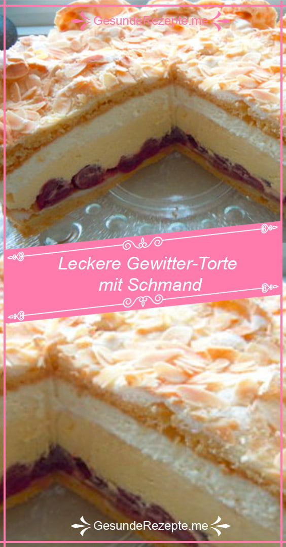 Die Quarkcreme auf den Kirschen verteilen und anschließend die Torte mit dem ausgekühlten Baiserbelag abschließen.