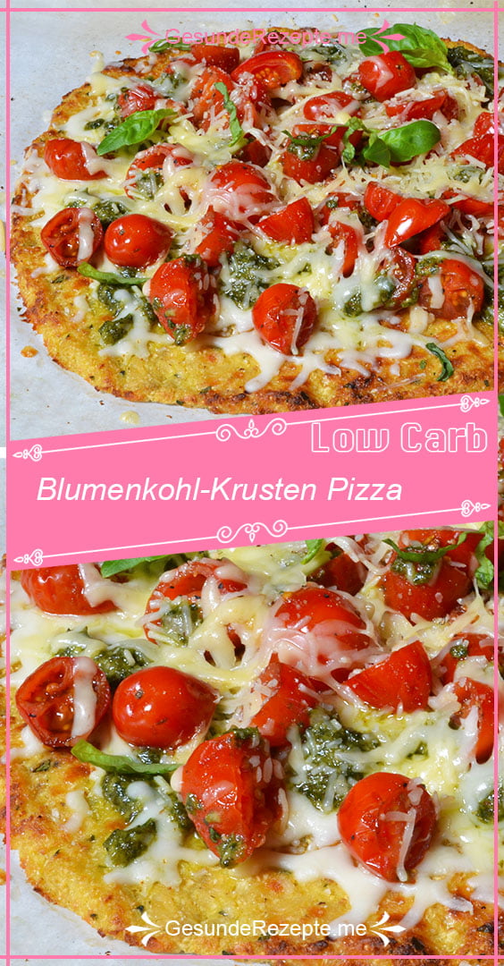 Überbackene Blumenkohl-Pizzakruste leicht mit Ihrer Lieblingssauce und Toppings. Bei 220 ° C 10 Minuten backen oder bis die Beläge sprudeln und warm sind. Vor dem Schneiden in 6 oder 8 Scheiben etwas abkühlen lassen.