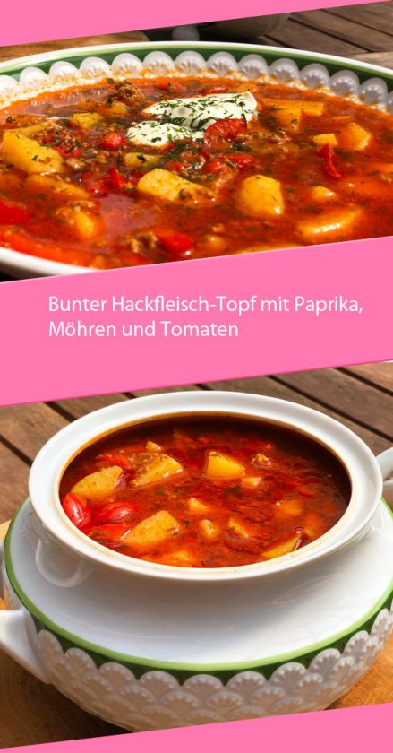 Gemüse vorbereiten. Kartoffeln, Karotten, Paprika, Zwiebel und Knoblauch in kleine Stücke schneiden. Tomaten vierteln (optional). Anbraten und dünsten. Öl in einem Topf erhitzen und das Hackfleisch darin anbraten. Zwiebeln hinzufügen und mitdünsten, bis sie glasig sind. Möhren und Paprika dazugeben und kurz mitdünsten. Knoblauch hinzufügen und kurz mit anbraten. Tomatenmark in die Mitte des Topfes geben und kurz mitrösten. Dann alles gut miteinander vermengen, damit das Gemüse und das Hackfleisch gut ummantelt sind. Gegebenenfalls Tomaten hinzufügen und erwärmen lassen. Restliche Zutaten hinzufügen. Kartoffeln und passierte Tomaten (oder gehackte Tomaten) hinzufügen. Brühe ebenfalls hinzufügen und gegebenenfalls mehr hinzufügen. Mit Salz, Pfeffer, Paprika und Majoran würzen. Das Ganze 20-40 Minuten köcheln lassen, bis das Gemüse bissfest ist. Zum Servieren Creme fraiche oder Schmand auf den Bauerntopf geben und mit Petersilie garnieren.