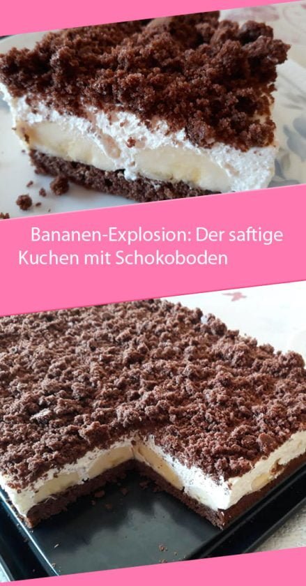 Für den Schokoboden den Backofen auf 180°C vorheizen. Eine 26cm Springform mit Backpapier auslegen. Eier, Zucker, Öl und Milch in eine Schüssel geben und alles gut miteinander verrühren. In einer anderen Schüssel Mehl, Kakao, Backpulver und Salz vermischen und zu der Eimasse geben. Alles gut miteinander vermengen, bis ein glatter Teig entsteht. Den Teig in die Springform füllen und im vorgeheizten Ofen ca. 20 Minuten backen. Stäbchenprobe machen und auskühlen lassen. Den abgekühlten Kuchen einmal durchschneiden und den oberen Boden in kleine Krümel zerbröseln. Für die Bananen Sahnefüllung die Sahne mit Sahnesteif, Vanilleextrakt und Puderzucker steif schlagen. Bananen in Scheiben schneiden, mit etwas Zitronensaft beträufeln und unter die geschlagene Sahne heben. Den unteren Schokoboden mit der Bananen Sahnefüllung bestreichen und den oberen Boden darauf setzen. Die Oberseite mit den Schokokrümeln bestreuen und für mindestens eine Stunde im Kühlschrank kaltstellen. Genießen Sie den köstlichen Bananenkuchen