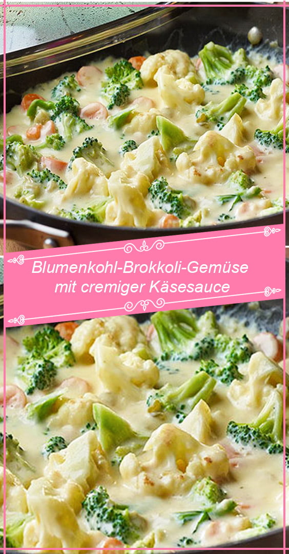 Blumenkohl-Brokkoli-Gemüse mit cremiger Käsesauce