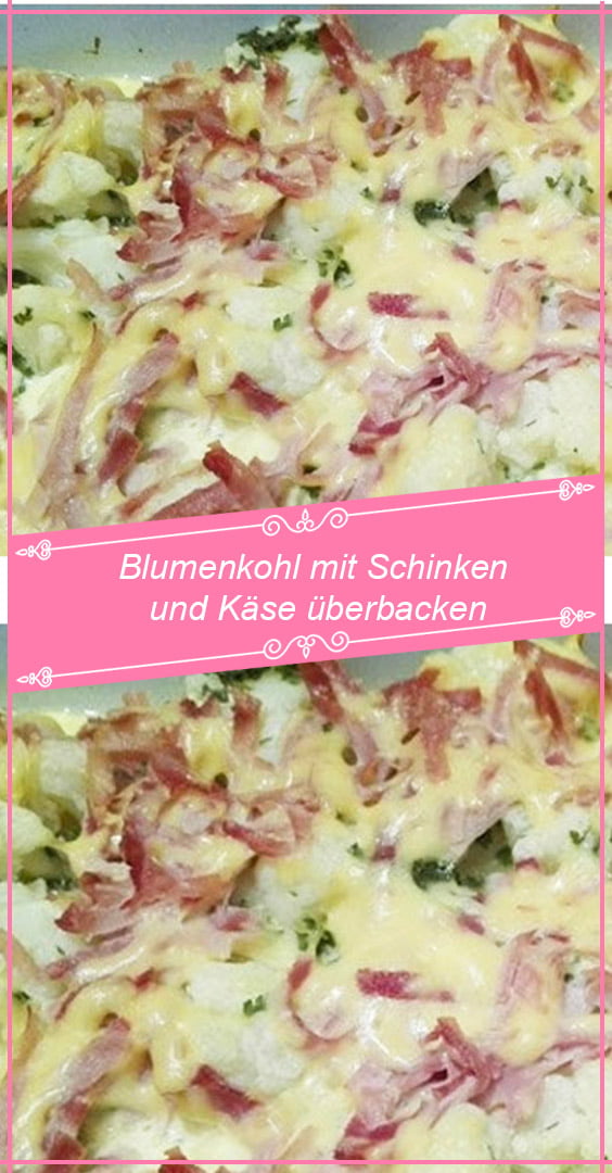 Den Schinken in Streifen schneiden, dazu verquirlte Eier mit Milch und Schmelzkäse geben und gründlich rühren, bis die Zutaten gebunden sind. Dann über den Blumenkohl gießen und mit geriebenem Gouda besteuern.