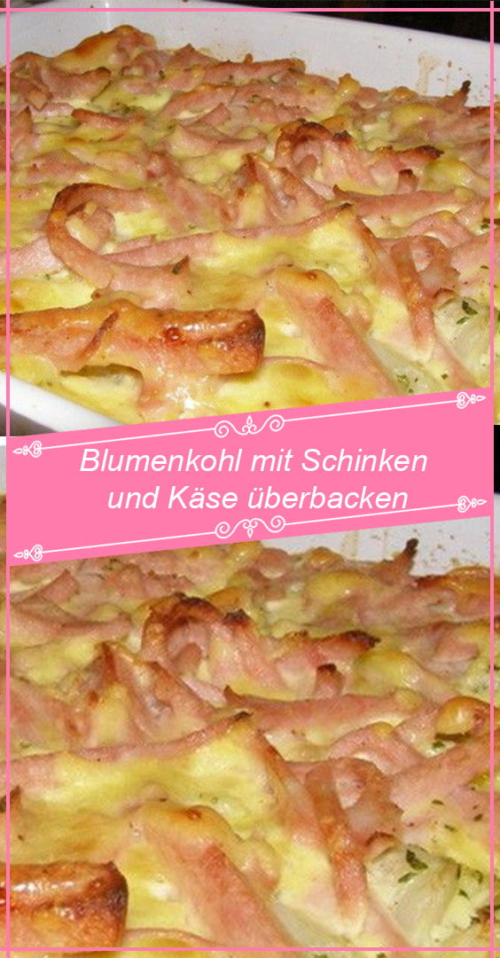 Den Schinken in Streifen schneiden, dazu verquirlte Eier mit Milch und Schmelzkäse geben und gründlich rühren, bis die Zutaten gebunden sind. Dann über den Blumenkohl gießen und mit geriebenem Gouda besteuern.