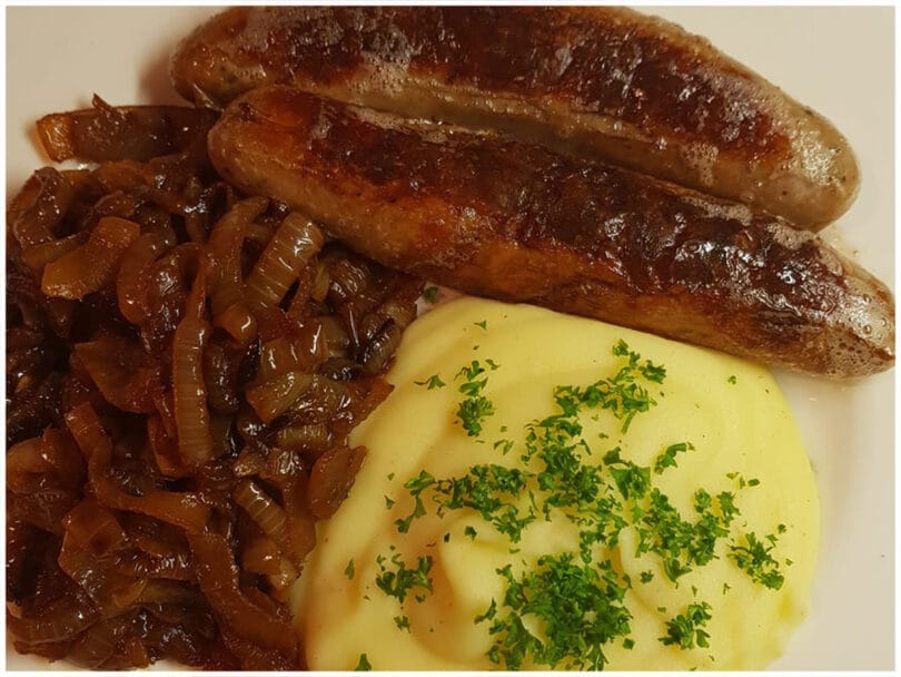 Die Zwiebeln schälen und in Ringe schneiden. In einer Pfanne die Butter erhitzen und die Zwiebelringe darin bei niedriger Hitze langsam schmoren lassen. Dabei regelmäßig umrühren, damit sie gleichmäßig garen. Mit Salz abschmecken.