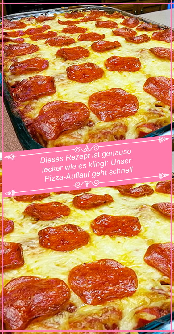 Zum Schluss geben Sie den Belag Ihrer Wahl auf den Pizza-Auflauf und lassen alles 30 Minuten im Ofen backen.