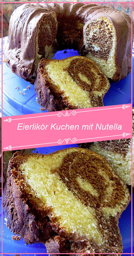 Anmerkung: Dieser Kuchen ist für einen trockenen Kuchen besonders saftig. Durch den Eierlikör und das Nutella treffen zwei feine Geschmacksnoten aufeinander.