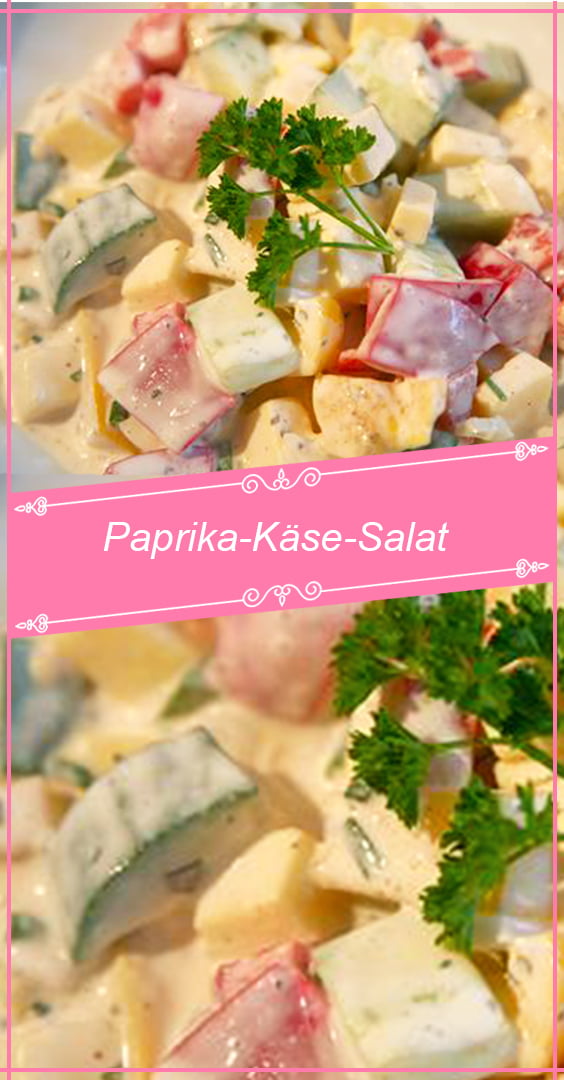 Das Gemüse und den Käse würfeln und mit der Soße vermengen.