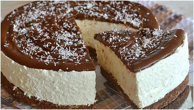 Nutella nehmen und ein wenig in der Mikrowelle erweichen und den Kuchen vollständig bedecken. Wir müssen eine dünne und zarte Schicht bilden. lassen es 1 Stunde im Kühlschrank ruhen.