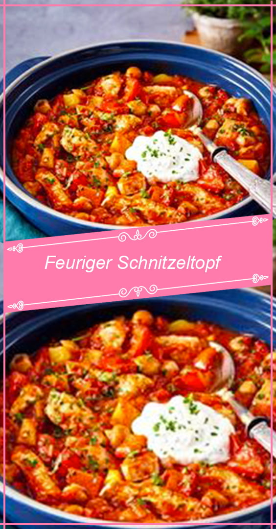 2 EL Öl in einem großen Topf erhitzen, Speck darin kross auslassen, Schnitzel kurz anbraten und alles herausnehmen. Im Bratfett Kartoffeln, Zwiebeln, Knoblauch und Chili andünsten. Mit Tomatenmark anschwitzen.