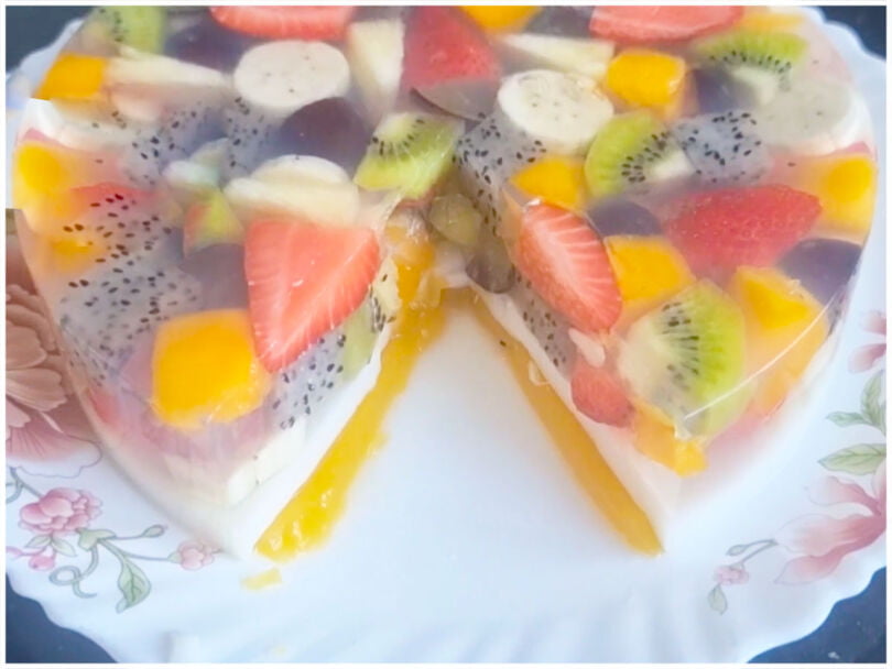 Der wunderschöne Frucht-Gelee-Kuchen ist jetzt bereit zum Genießen.