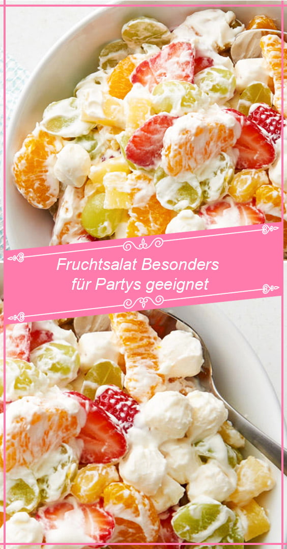 In einer großen (durchsichtigen) Glasschüssel Pfirsiche, Heidelbeeren, Erdbeeren und Trauben Mandarinen einschichten. In einer separaten Schüssel Quark, Zitronensaft und Zitronenschale mischen. In einer weiteren Schüssel süße Sahne mit Puderzucker steif schlagen. Quarkmasse mit geschlagener Sahne vermischen, über die Früchte geben, glatt streichen und mit den gehackten Walnüssen betreuen. Die Schüssel abdecken und bis zum Servieren kühl stellen.