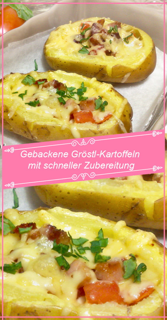 Ofen vorheizen (E-Herd: 220 °C/Umluft: 200 °C/Gas: s. Hersteller). Ein Backblech mit Backpapier auslegen. Kartoffeln längs halbieren. Das Fruchtfleisch, bis auf ca. 1 cm Rand, rundum mit einem Teelöffel herauslösen. In einer Schüssel mit einer Gabel zerdrücken. Ei und Schmand unterrühren.