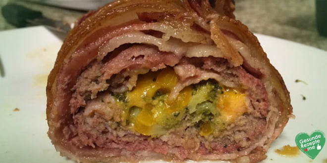 Die Baconscheiben auf einem neuen Stück Alufolie ausbreiten, die Hackrolle darauf legen und wieder mit der Alufolie aufrollen, die Alufolie diesmal drum lassen.
