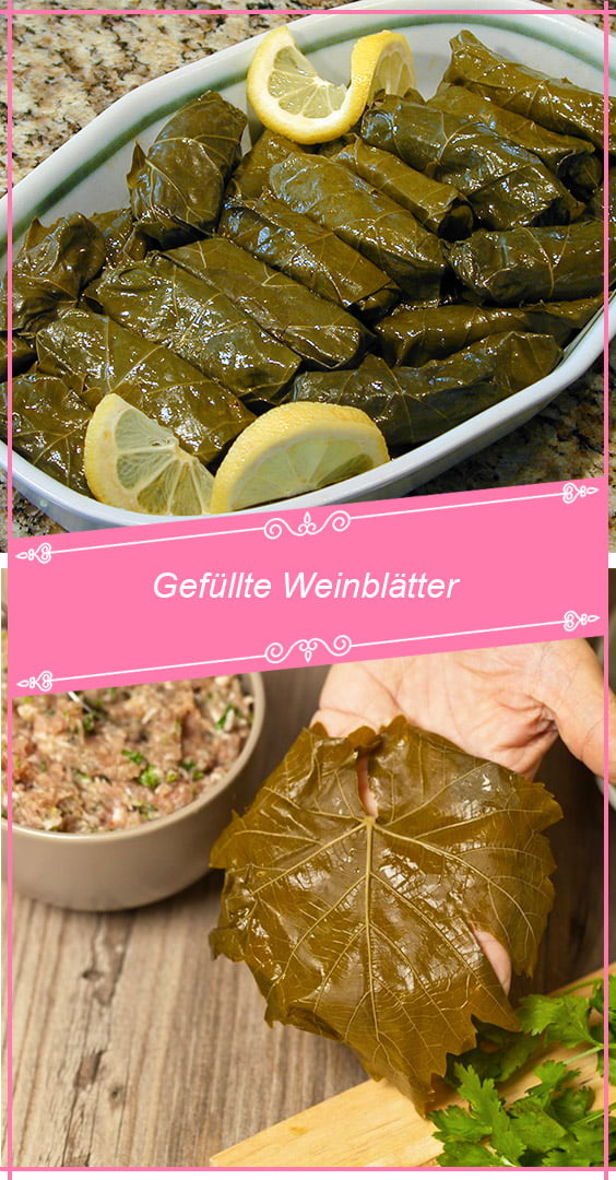 Die Weinblätter lasse ich in der Spüle im warmem Wasser vorher etwas einweichen. Anschließend die Weinblätter füllen und eindrehen. Kleiner Tipp: vorher ein paar kaputte Blätter auf den Topfboden verteilen.