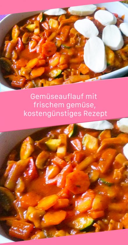 Kräuterbutter erhitzen, Knoblauchzehen und Gemüse dazugeben und andünsten. Passierte Tomaten und Tomatenmark zufügen, aufkochen, mit Salz, Pfeffer und Zucker würzen und in eine Auflaufform geben. Mozarella abtropfen lassen, in Scheiben schneiden und auf dem Gemüse verteilen.