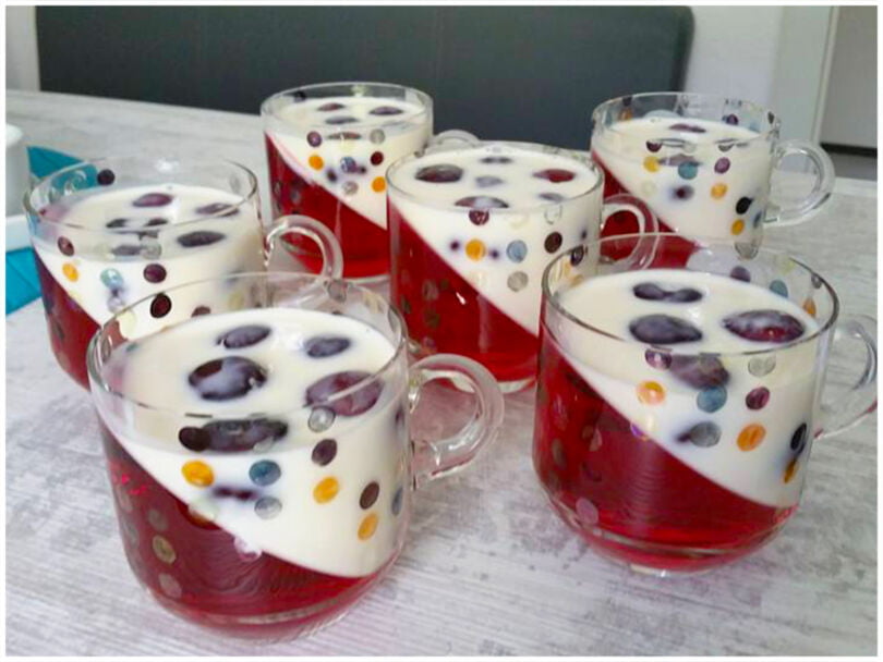 … ich habe ich Gläser schräg in einen Eierkarton gestellt bis die Götterspeise fest war