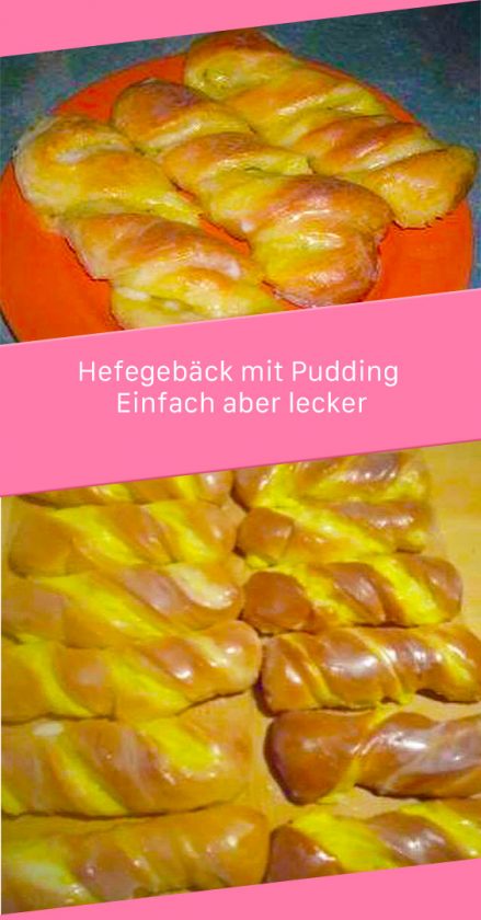 Aus jedem Teigstück einen Strang rollen…….die dünneren Enden zweimal verkreuzen…..und einen Brezel draus formen ……. auf das Backpapier setzen. Sind alle Brezel fertig……die entstandenen Öffnungen in den Brezeln mit jeweils 2 EL Pudding pro Öffnung füllen.