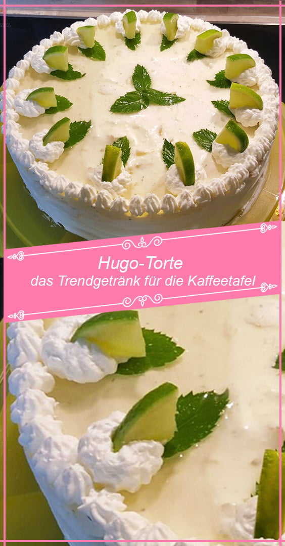 Für den Guss die Gelatine einweichen. Den Sekt mit Sirup und dem Limettensaft in einen Messbecher geben und mit Wasser auf 250 ml auffüllen. Dann erwärmen und die eingeweichte Gelatine darin auflösen. Abkühlen lassen und dann oben auf die Torte gießen. Darauf achten, dass die Creme noch fest am Tortenring anliegt, sonst läuft der Guss davon. Wer will, kann gleich die Pfefferminzblätter für die Deko in den flüssigen Guss legen. Die Torte dann wieder für ca. 2 Stunden kühlen. Die Sahne aufschlagen und die Torte damit ausgarnieren. Anschließend mit Pistazien bestreuen.