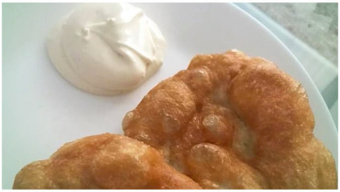 In einem großen Topf oder einer tiefen Pfanne das Öl erhitzen. Die Hände etwas einölen, vom Teig kleine Stücke abreißen und zu flachen Fladen ziehen. Bestenfalls sollten die Ränder etwas dicker bleiben. Die Fladen in das heiße Öl geben. Jedoch immer nur so viele Fladen, wie nebeneinander in der Pfanne Platz haben. Sobald die eine Seite Farbe bekommen hat, umdrehen und fertig backen.