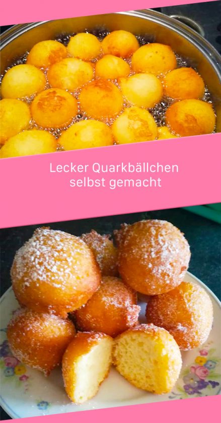 Obwohl Fastnacht und damit auch die Zeit für Fettgebackenes ja schon eine ganze Weile wieder vorbei ist, finde ich, dass man eigentlich immer Kreppel und anderes Fettgebäck essen kann und sollte. Das trifft umso mehr zu, wenn man, wie ich, Fastnacht nur wegen eben diesen Spezialitäten mag und sonst ohne Probleme darauf verzichten könnte. Fastnachtsgebäck ohne Fastnacht, für mich perfekt. Für alle Fastnachtsliebhaber gilt aber auch: schon mal für nächstes Jahr das Rezept vormerken oder am besten gleich ausprobieren. Kreppel sind schon sehr lecker, besonders selbstgemacht mit Hagebuttenmarmelade wie letztes Jahr, aber Quarkbällchen sind noch ein Tick besser. Warum? Sie sind saftiger, haben einen stärkeren Eigengeschmack und schmecken so auch ohne Marmelade einfach nur mit etwas Zimtzucker genial lecker. Und das Beste überhaupt: sie sind so unglaublich schnell gemacht, da sie nicht aus Hefeteig hergestellt werden. Einfach alle Zutaten verrühren, etwas ruhen lassen (in der Zwischenzeit einfach das Fett schon mal erhitzen) und schon kann es losgehen: das Frittieren. Keine Sorge, auch das ist nicht schlimm. Am besten mit einem Thermometer überprüfen, dass das Fett 180°C hat oder den Griff eines Holzlöffels ins Fett tauchen, wenn Blasen daran aufsteigen ist die Temperatur richtig. Jetzt die Bällchen 6 Minuten frittieren, bis sie durchgegart sind. Zum Portionieren eignet sich ein Eisportionierer perfekt, dann haben die Bällchen alle die gleiche Größe, garen dadurch auch gleichmäßig und es ist eine saubere und schnelle Angelegenheit. Beim Frittieren darauf achten, das Fett nicht zu heiß werden zu lassen, damit der Teig nicht außen schon verbrannt, innen aber noch roh ist. Außerdem nicht zu viele Bällchen auf einmal frittieren, sonst kühlt das Fett zu schnell ab, aber ansonsten ist es eigentlich ganz leicht. Man sollte nur sehr vorsichtig sein, wie immer, wenn man mit heißem Fett arbeitet. Hier aber nun das Rezept für das leckere schmeckt-das-ganze-Jahr-Fastnachtsgebäck.