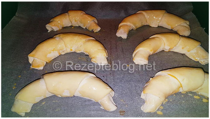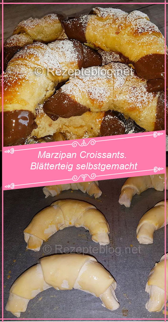 Nun einen pizzaroller oder Messer nehmen und wie kuchenstücke den Teig teilen. Ein block Marzipan in Stücke schneiden auf die breite Seite legen und schön aufrollen. Mit Eigelb Milch Gemisch einpinseln und im Backofen auf 180 bis 200 Grad goldgelb backen. Wieviel min. Kann ich net sagen, aber wenn sie goldgelb knusprig sind raus nehmen