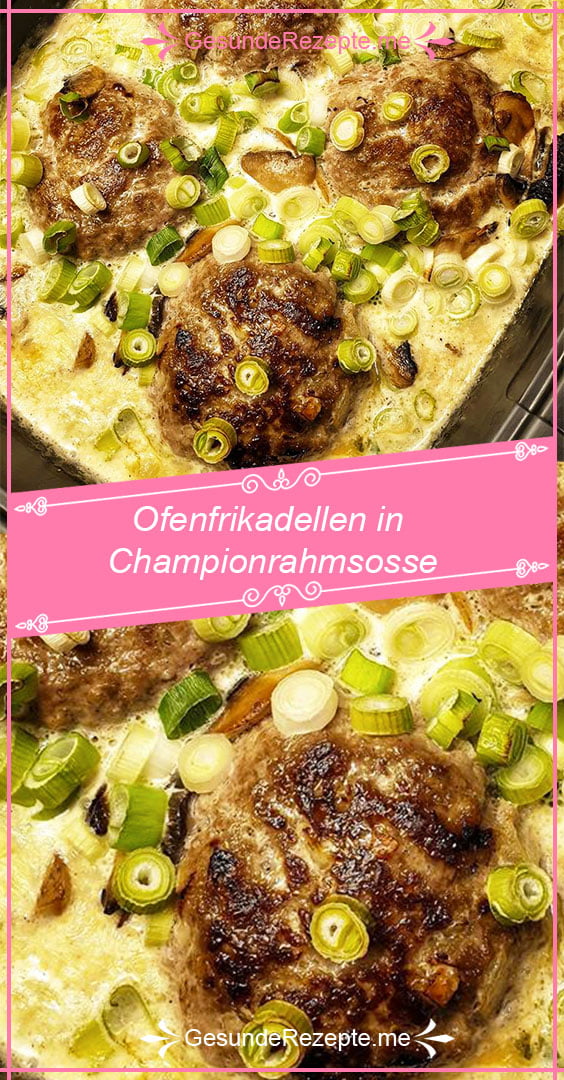 Champignonsahne zu den Frikadellen geben und mit Lauchzwiebeln bestreuen.