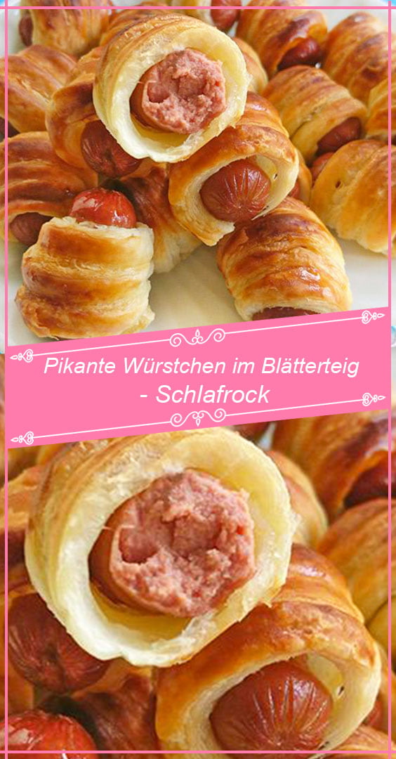Die Würstchen auf ein Backblech legen und die Oberseite 3-4 mal leicht einschneiden. Bei ca. 180°C 15-20 min backen, bis der Blätterteig schön aufgegangen ist und Farbe bekommen hat.