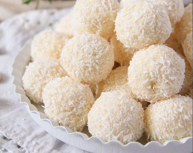 Die Sahne mit der Butter erwärmen und die Schokolade darin schmelzen lassen.dann die Kokosraspel rein und alles mit einem Mixer verkneten. Dann 1 oder wenn es noch nicht fest genug ist 2 Stunden in den Kühlschrank bis es eine richtig feste Masse ist zum verarbeiten. Dann in Kugeln formen wer mag kann eine Mandel in die mitte machen ist kein muss und durch die Kokosraspel wälzen und im Kühlschrank lagern. Etwa 1 Stunde drinne lassen dann sind sie fertig zum essen
