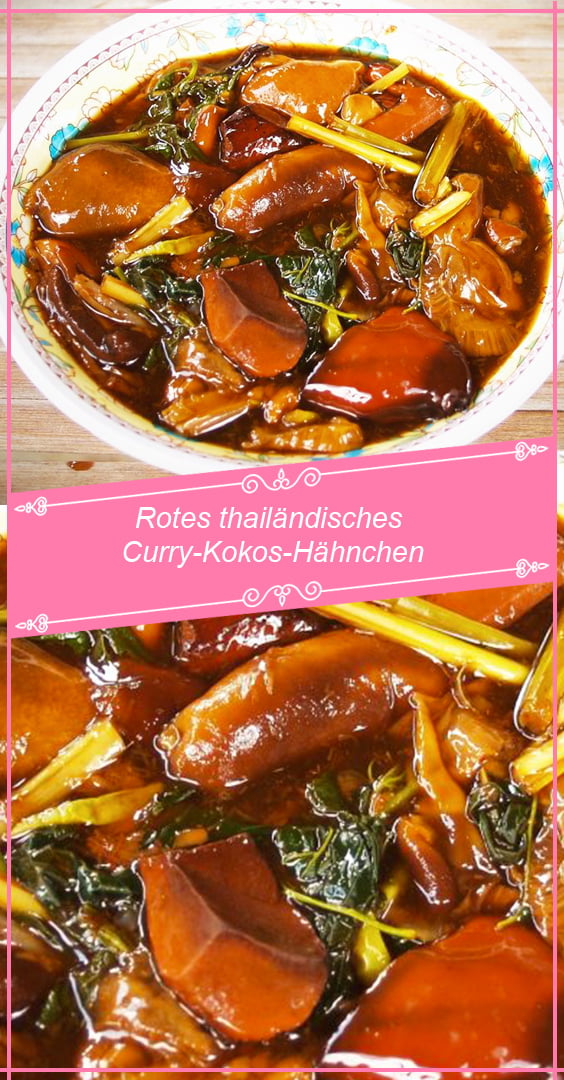 Danach die rote Curry-Paste einrühren, das Hühnchenfleisch dazugeben und alles gut durchmischen.