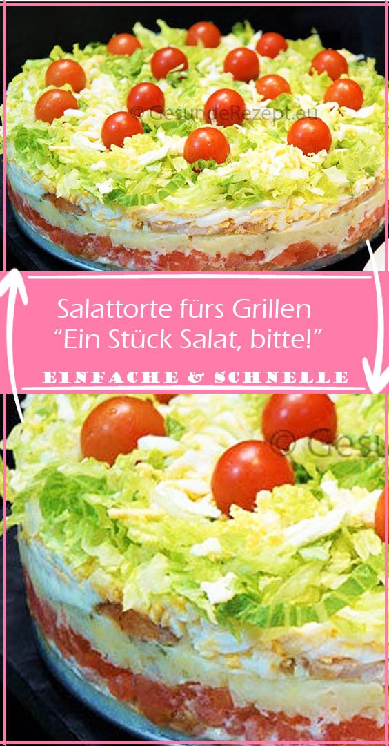 Boden und Rand einer Springform (24 cm Ø) vorsichtig mit den Salatblättern auslegen, so dass die Form vollständig ausgekleidet ist. Boden der Salattorte dünn mit dem Dressing einstreichen. Mit der Hälfte der Käsescheiben belegen. Putenaufschnitt gleichmäßig darauf verteilen. Eier, Rest Salat und Tomaten einschichten, mit Käse abschließen und restliches Dressing dünn daraufstreichen. Ca. 45 Minuten im Kühlschrank durchziehen lassen.