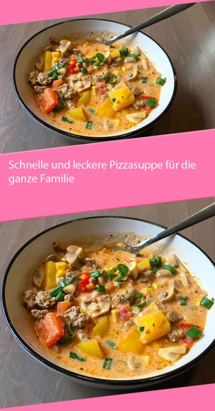 Die Pizzasuppe heiß servieren und mit gehackten Frühlingszwiebeln garnieren. Guten Appetit!