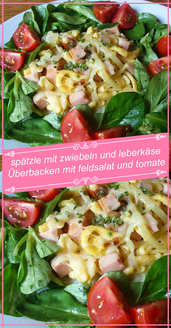 spätzle mit zwiebeln und leberkäse Überbacken mit feldsalat und tomate