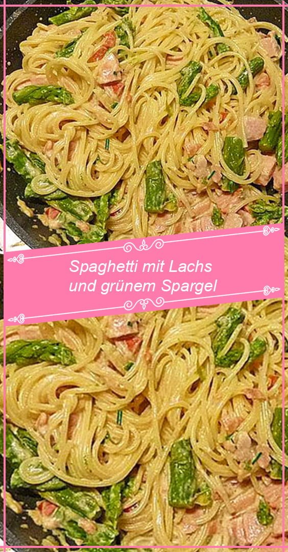 Spaghetti mit Lachs und grünem Spargel