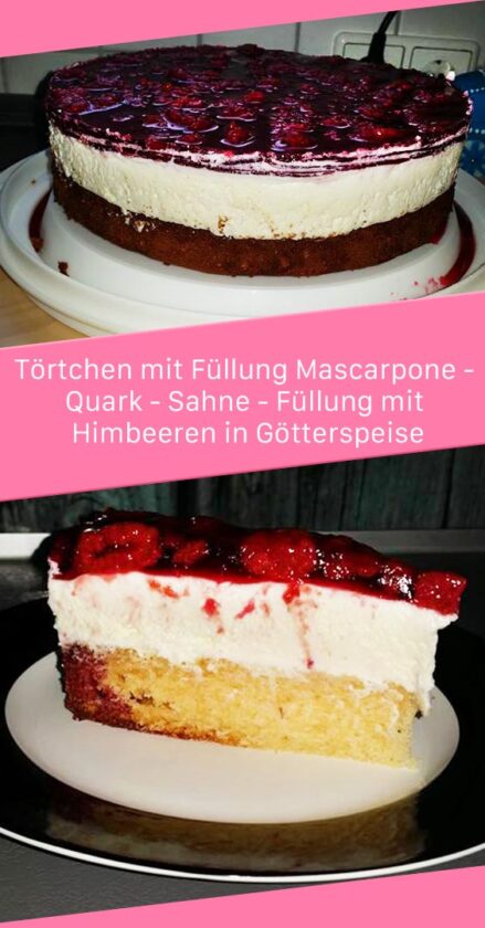 Für heute habe ich mir mal ein Törtchen gemacht und mit der Füllung ein wenig rum experimentiert Mascarpone – Quark – Sahne – Füllung mit Himbeeren in Götterspeise.