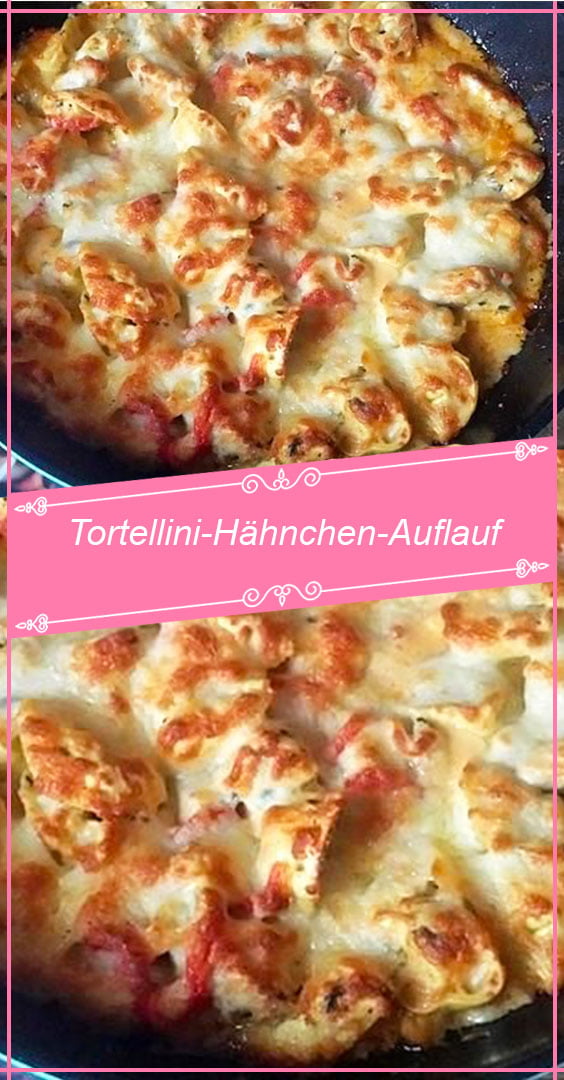 Die Tortellini nach Packungsanweisung kochen, falls diese nicht vorgekocht gekauft wurden, anschließend in einer große Auflaufform geben. Den Inhalt der Pfanne aufkochen lassen, falls notwendig etwas Soßenbinder oder Mehl hinzugeben, dann alles in die Auflaufform zu den Nudeln geben und mit dem geriebenen Käse bestreuen.