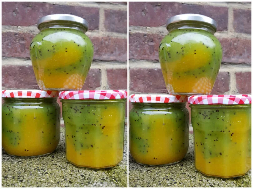 Dasselbe mit den Kiwis und weiteren 300g Gelierzucker wiederholen.