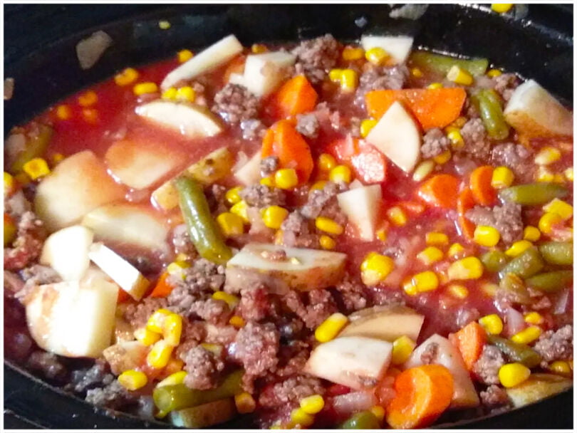 Gehacktes anbraten….dann die in Ringe geschnittenen Zwiebeln dazu….mit Salz und Pfeffer würzen….dann die gehackten Tomaten unterrühren und mit der Brühe auffüllen….ja 30 min köcheln lassen….ca 10 min vor Kochende den in Ringe geschnittenen Porree dazu…zum Schluss die Bohnen und den Mais unterrühren…ggf nachwürzen